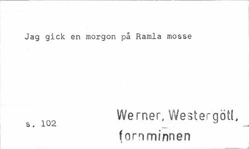 //// Jag gick en morgon på Ramla mosse //// Werner, Westerqötl, //// s. 102 1 y ... //// fornminnen ////