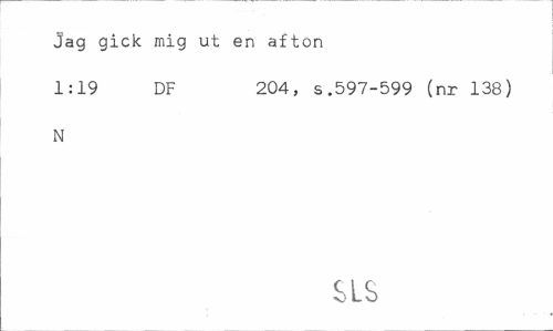 //// Jag gick mig ut en afton //// 1:19 DF 204, s.597-599 (nr 138) //// N //// SLS ////