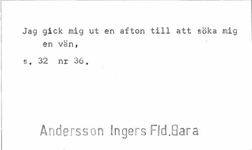 //// Jag gick mig ut en afton till att söka mig en vän, //// s. 32 nr 36. //// Andersson fngers Ffd.Qara ////