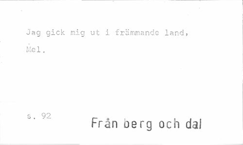 //// Jag gick mig ut i främmande land, Mel. //// s 92 //// Frän oerg och dal ////