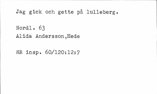//// Jag gick och gette på lulleberg. Nordl. 63 //// Alida Andersson,Hede SR insp. 60/120:12j? ////