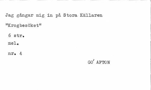 //// Jag gångar mig in på Stora Källaren //// "Krogbesöket" //// 6 str, mel. //// nr. 4 //// GO' AP TON ////