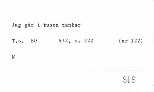 //// Jag går i tusen tankar //// T.s. BO 532, s. 222 (nr 122) //// N //// SLS ////