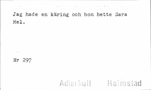 //// Jag hade en käring och hon hette Sara Mel. //// Nr 297 //// Adlerkull Halmstad ////