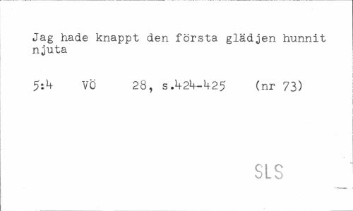 //// Jag hade knappt den första glädjen hunnit njuta //// 5ib VÖ 28, s.k2b-k25 (nr 73) //// SLS ////
