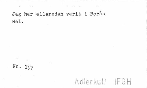 //// Jag har allaredan varit i Borås Mel. //// Nr. 157 //// Adlerkuli iFGH ////