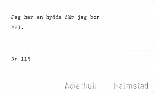 //// Jag har en hydda där jag bor Mel. //// Nr 115 //// Adlerkull Halmstad ////