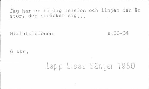 //// Jag har en härlig telefon och linjen den är stor, den sträcker sig... //// Himlatelefonen s.33-34 //// 6 str. //// Lap p-Lvsas 5 sn g er i B 5 0 ////