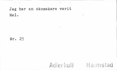 //// Jag har en skomakare varit Mel. //// Nr. 25 //// Adlerkull Halmstad ////