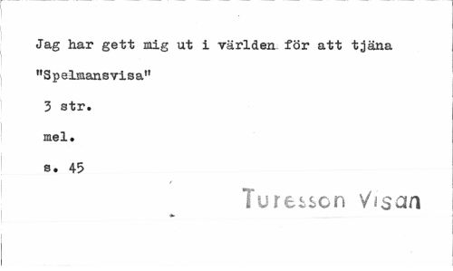 //// Jag har gett mig ut i världen för att tjäna "Spelmansvisa" 3 str. mel. s. 45 //// Turesson Visan ////