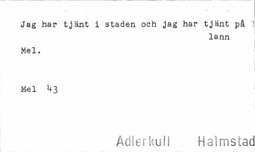 //// Jag har tjänt i staden och jag har tjänt på //// lann //// Mel. //// Mel //// Adlerkull Halmstac ////