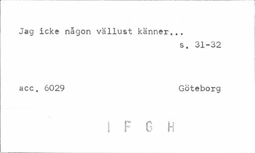 //// Jag icke någon vällust känner... //// s. 31-32 //// acc. 6029 Göteborg //// I F G H ////