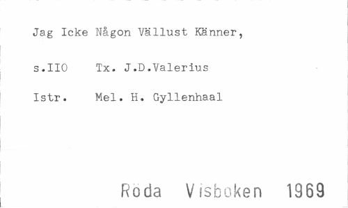 //// Jag Icke Någon Vällust Känner, //// s.IIO Tx. J.D.Valerius Istr. Mel. H, Gyllenhaal //// Roda Visboken 1969 ////