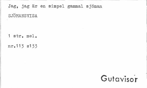 //// Jag, jag är en simpel gammal sjöman SJÖMANSVISA //// 1 str. mel. nr.113 s133 //// Gutavisor ////