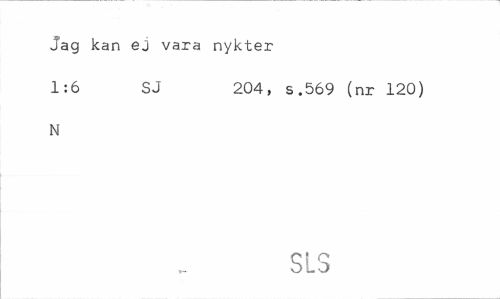 //// Jag kan ej vara nykter //// 1:6 SJ 204, s .569 (nr 120) //// N //// SLS ////