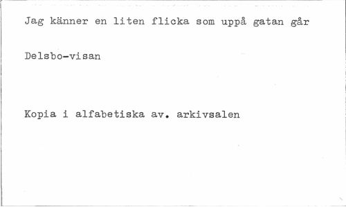 //// Jag känner en liten flicka som uppå gatan går Delsbo-visan //// Kopia i alfabetiska av. arkivsalen ////