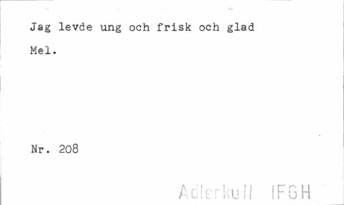 //// Jag levde ung och frisk och glad Mel. //// Nr. 208 //// Adlerkull IFGH ////