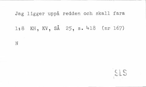//// Jag ligger uppå redden och skall fara 1:8 KH, KV, SÅ 25, s. Ifl8 (nr 167) N //// ILS //// 1 ////