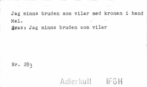 //// Jag minns bruden som vilar med kronan i hand Mel. //// |yasj Jag minns bruden som vilar Nr. 283 //// Adlerkuli IFSH ////