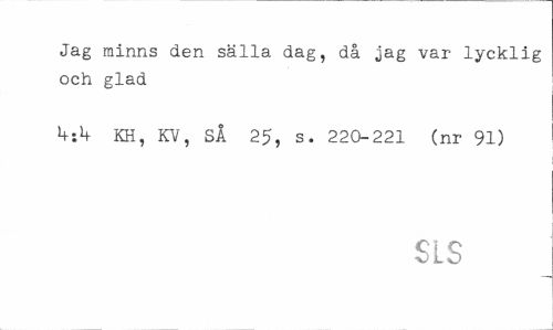 //// Jag minns den sälla dag, då jag var lycklig och glad //// KH, KV, SÅ 25, s. 220-221 (nr 91) //// SLS ////