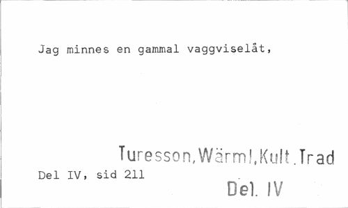 //// Jag minnes en gammal vaggviselåt, //// Turesson,Wärml,Kult.Trad //// Del IV, sid 211 //// Del. IV ////