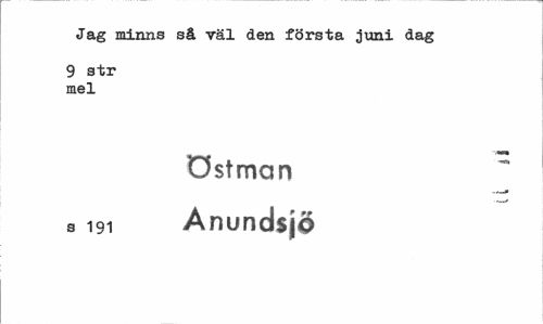 //// Jag minns så väl den första juni dag //// 9 str mel //// östman s 191 Anundsjö ////