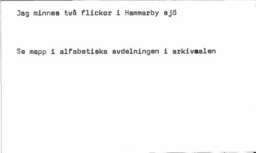 //// 3ag minnes två flickor i Hammarby sjö //// Se mapp i alfabetiska avdelningen i arkivaalen ////
