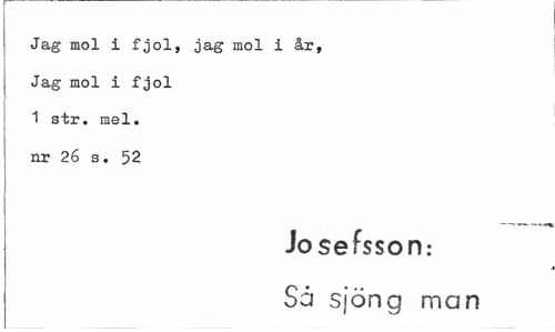 //// Jag mol i fjol, jag mol i år, Jag mol i fjol 1 str. mel. nr 26 s. 52 //// Josefsson: //// Så sjöng man ////