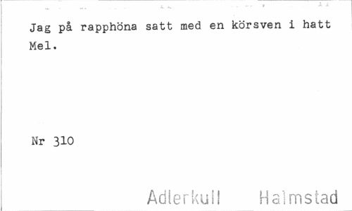 //// Jag på rapphöna satt med en körsven i hatt Mel. //// Nr 310 //// Adlerkuli Halmstad ////