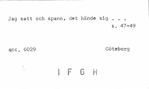 //// Jag satt och spann, det hände sig . . . //// s. 47-49 //// qcc. 6029 Göteborg //// i F 6 H ////