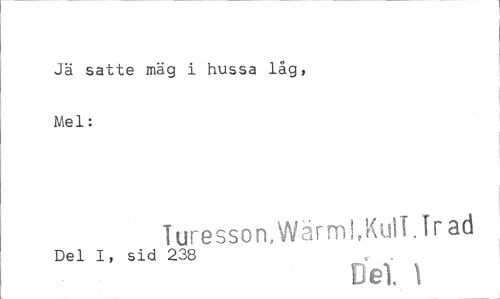 //// Jä satte mäg i hussa låg, Mel: //// Turesson.Wärml, Kul T. I r ad //// Del I, sid 238 r . //// Del, \ ////