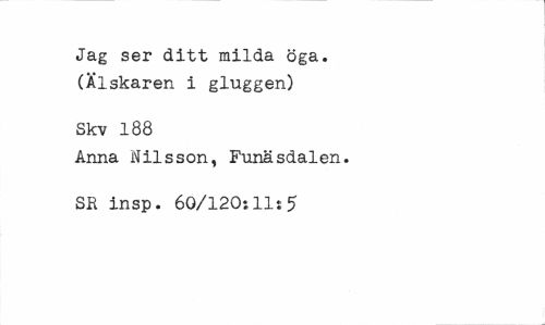 //// Jag ser ditt milda öga. (Älskaren i gluggen) //// Skv 188 //// Anna Nilsson, Funäsdalen. SR insp. 60/120:11:5 ////