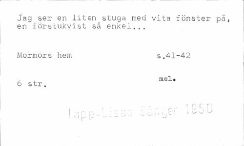 //// Jag ser en liten stuga med vita fönster på, en förstukvist så enkel... //// Mormors hem s.41-42 //// 6 str. m"1* //// • . • 4 O C f"r //// t Pr. p.J ' o ar.',, Si i t> - ^ ////