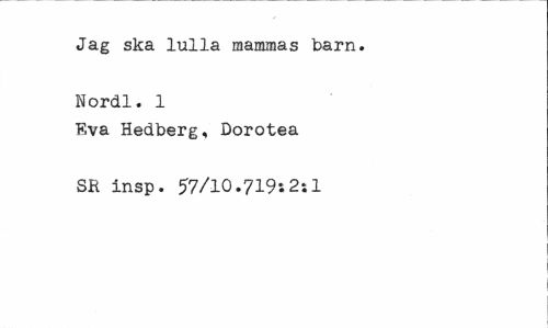 //// Jag ska lolla mammas barn. Nordl. 1 //// Eva Hedberg, Dorotea SR insp. 57/10.719*2sl ////