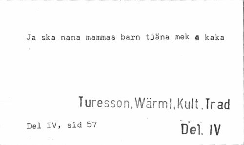 //// Ja ska nana mammas barn tjäna mek § kaka //// Turesson, Wärml, Kult. Trad //// Del IV, sid 57 jy ////