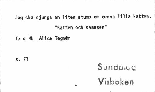 //// Jag ska sjunga en liten stump om denna lilla katten. //// "Katten och svansen" Tx o Mk Alice Tegnér //// s. 71 //// SundDiyg Visboken ////