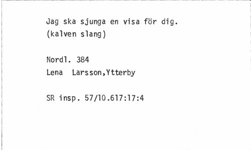 //// Jag ska sjunga en visa för dig. (kalven slang) //// Nordl. 384 //// Lena Lars son,Ytterby SR insp. 57/10.617:17:4 ////