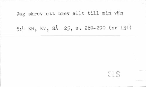 //// Jag skrev ett brev allt till min vän 5-A KH, KV, SÅ 25, s. 289-290 (nr 131) //// SIS ////