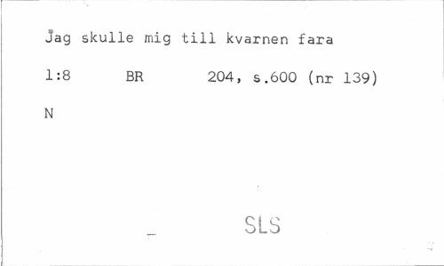 //// Jag skulle mig till kvarnen fara //// 1:8 BR 204, s.600 (nr 139) //// N //// SLS ////