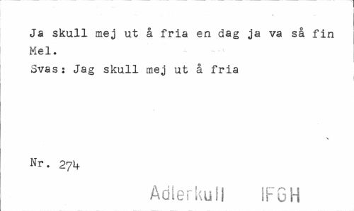 //// Ja skull mej ut å fria en dag ja va så fin Mel. //// Svas: Jag skull mej ut å fria Nr. 27U //// Adlerkuli IF6H ////