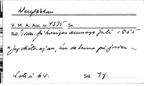 //// | Af //// 5 V. M. A. Acc. nr WPj^Sn. //// j Ref. jf* xJ^J / //// | 6 v- Sid. 7/-... ////