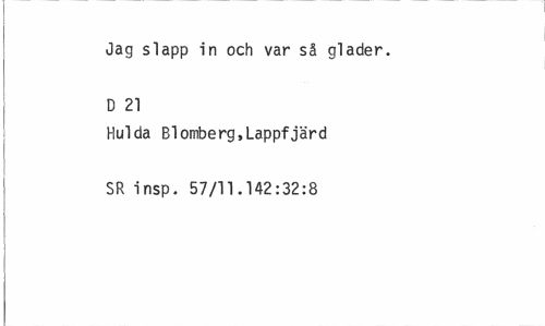 //// Jag slapp in och var så gläder. D 21 //// Hulda Blomberg,Lappfjärd SR insp. 57/11.142:32:8 ////