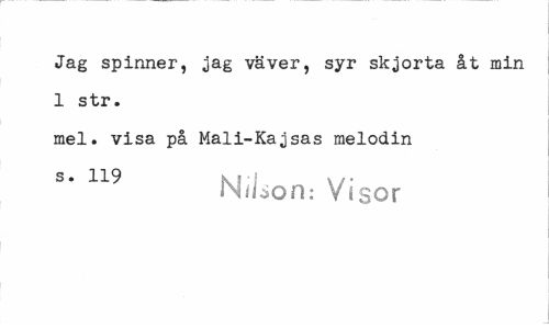 //// Jag spinner, jag väver, syr skjorta åt min 1 str. //// mel. visa på Mali-Kajsas melodin //// s* 119 Niiion: Visor ////