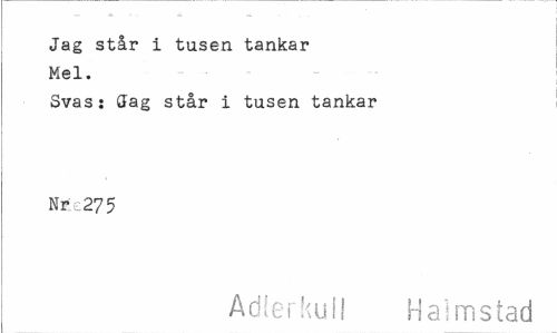 //// Jag står i tusen tankar Mel. //// Svas: CFag står i tusen tankar Nr.;-: 27 5 //// Adlerkuli Halmstad ////