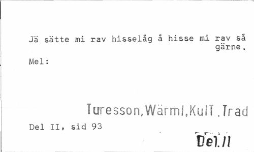 //// Jä sätte mi rav hisselåg å hisse mi rav så //// gärne . //// Mel: //// Turesson,Wärml,KulT .Träd //// Del II, sid 93 //// Del.' Il ////