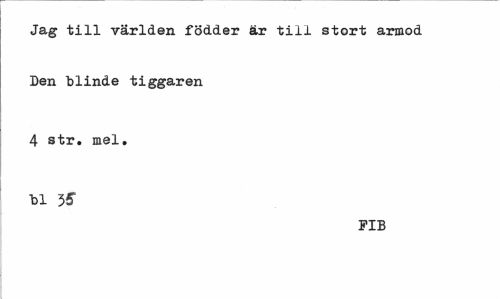 //// Jag till världen födder är till stort armod Den blinde tiggaren //// 4 str. mel. //// bl //// FIB ////