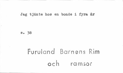 //// Jag tjänte hos en bonde i fyra år s. 38 //// Furu i and Barnens Rim och ramsor ////