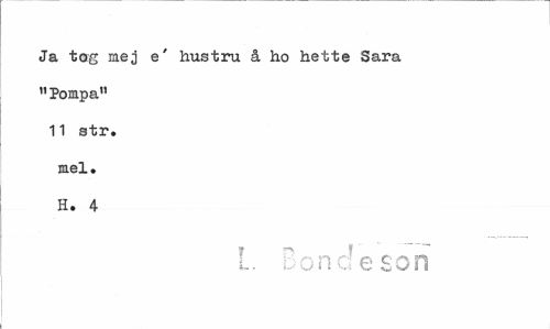 //// Ja tog mej e' hustru å ho hette Sara "Pompa" 11 str. mel. H. 4 //// L Bonde son ////