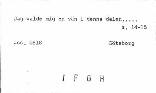 //// Jag valde mig en vän i denna dalen... //// s. 14-15 //// acc. 5818 Göteborg //// I r 6 H ////
