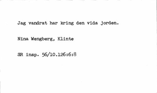 //// Jag vandrat har kring den vida jorden, Nina Wengberg, Klinte SR insp. 56/10.126:6:8 ////